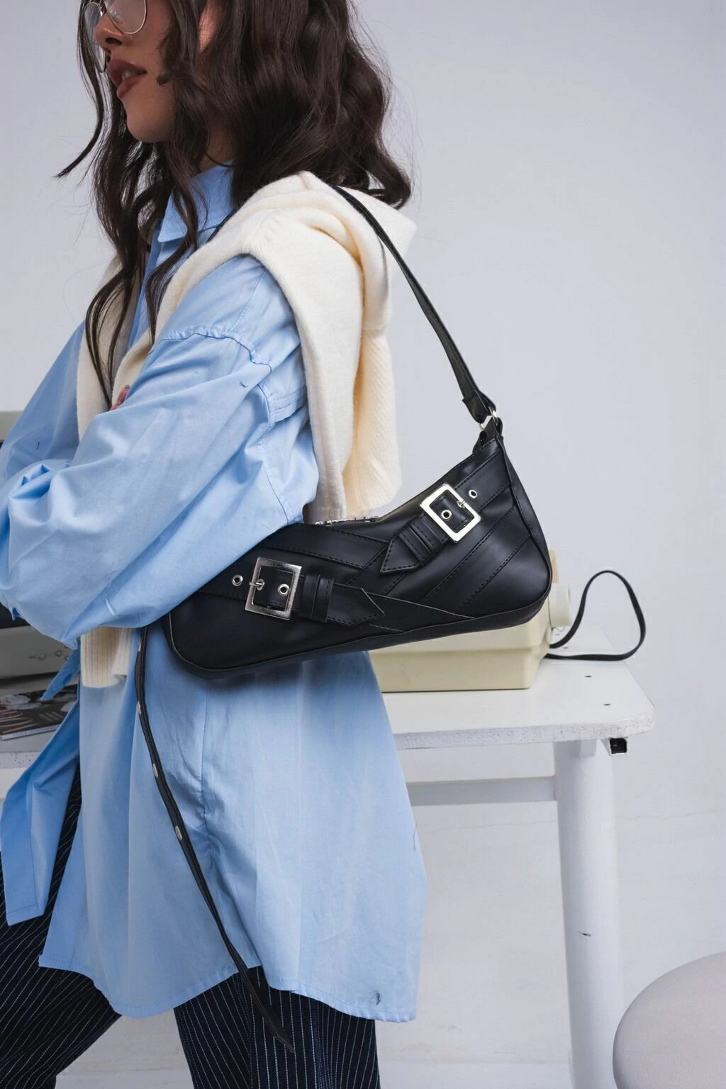 Cartera mediana con diseño de recortes y hebillas que la hacen UNICA, es ideal para salir o completar el outfit para un evento !