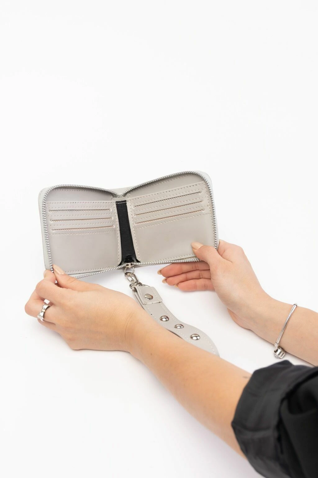 Incluye llavero con ojales plateados en el deslizador del cierre.