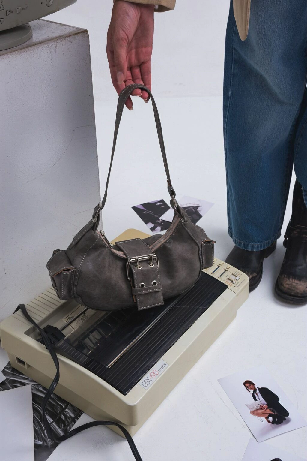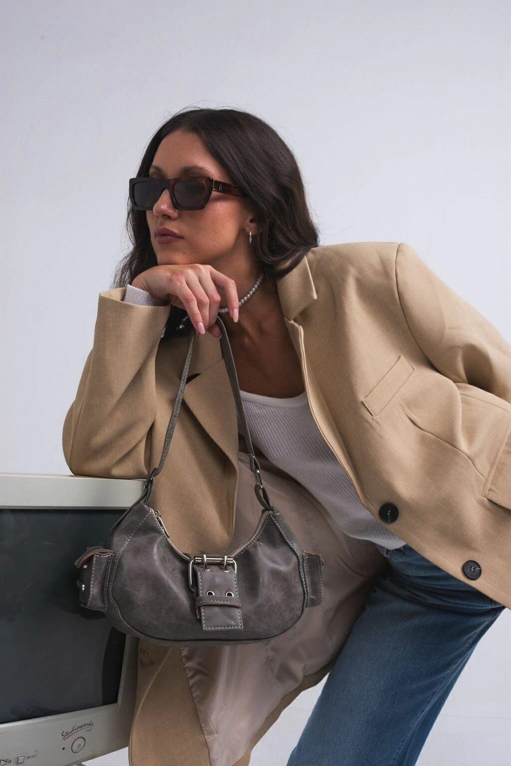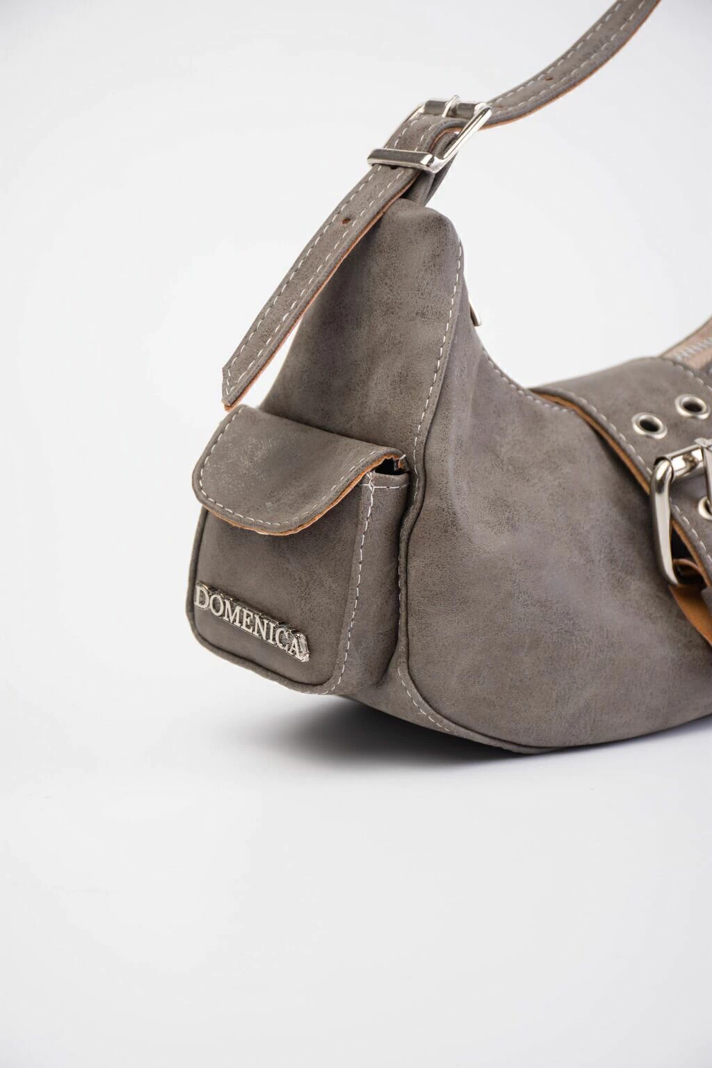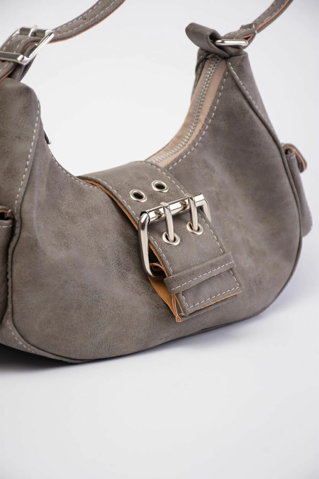 Cartera estilo cargo con correa regulables con hebillas, un diseño unico que incluye dos bolsillos funcionales en sus laterales y una hebilla en su frente.